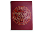 With onlays, tooling and ink. The design reflects Dante's evolving sense of the limitations of courtly love and its transition into sacred love. The nine bronze stars represent Dante and Beatrice who are both aged nine when they first meet.